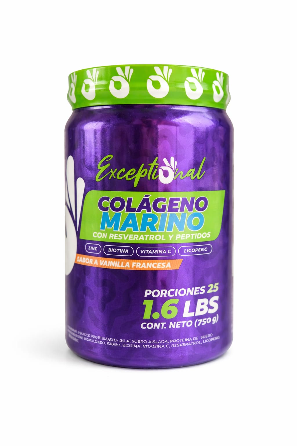 Colágeno Marino con Resveratrol 750 gramos, una fórmula avanzada diseñada para complementar tu alimentación diaria y apoyar el cuidado integral de la piel, cabello, uñas y articulaciones.